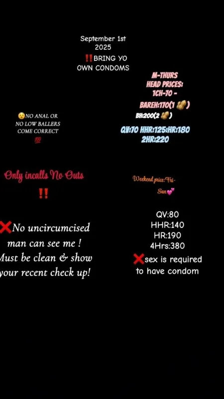 ‼‼‼READ B4 CONTACTING ME ‼‼‼ Hey Fellas ❤ my name is J'lani from chicago, livin out west 🙂 Come book with me i promise You will have thw best timw w/me. non-rushed sweet experience😮💨 ‼‼‼IF YOUR MORE THEN 15 MIN IT WILL AUTOMATICALLY BE A DEPOSIT REMEMBER IM NOT MOBILE (Using LYFT). No disrespect will be tolerated ‼Will get yo a$$ blocked 😏 i can do cardates or come to you or i can come to your home as long Your respectful & You pay me correctly‼ also fellas please be patient i dont see 10 niggas so if i dont pick up that mean im done or busy😘 👉🏾FELLAS MY RATES WILL BE IN MY PICS AS WELL SO AGAIN PAY ATTENTION‼ ‼‼‼FACETIME VERFICATION REQUIRED‼‼‼. (GOOGLE MEET OR IPHONE ONLY) 👊🏽NO AA UNDER 35 😍All race Welcome